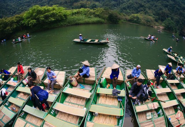 13:30 – Leave for the Trang An Grottoes, an out-standing natural beauty of majestic limestone massif at 20 square kilometer rise dramatically out from rice paddy fields. Deep into the linked chains of towering mountain are pristine places of mystical valleys, numerous fresh water ponds, and jungle. Embark on a traditional sampan gently roweddown the exquisite river through numerous caves: Lam Cave, Vang Cave, Dai Cave, Thanh Truot Cave,...and Cao Sơn Temple, Suoi Tien Temple, Vu Lam Temple…