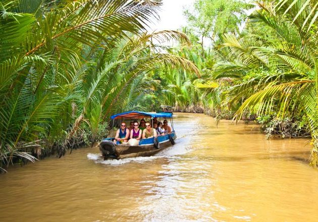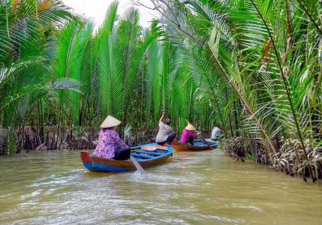 Finally, we will have a short rowing boat ride to small canal, enjoy the fresh air under the cool green water palm.