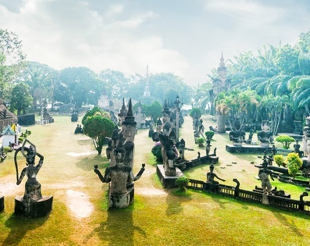 Vientiane is the capital and largest city in Laos. Located on the banks of the Mekong River, Vientiane is a city steeped in legend and history. The city is the home of the massive gilded stupa, Pha That Luang, a national symbol of Laos. The streets are lined with trees, French colonial buildings, street markets, Buddhist temples, and noodle shops. Just outside the city is Buddha Park, a garden littered with over 200 cement sculptures depicting the gods and monsters of Buddhist and Hindu myth.