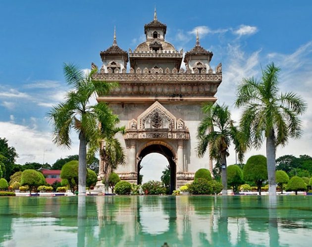 Patuxay-the memorial monument –was built in 1957 and is the most prominent landmark in the city. The architecture of the monument was inspired by the architecture of Triomphe in Paris and combined with typical Lao motifs. From the top of the monument, you can see an excellent panoramic view of the city.