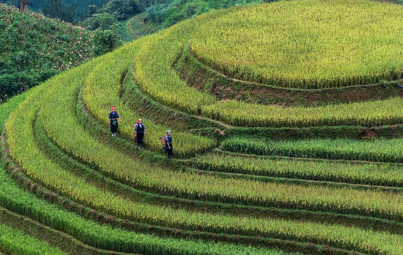 14.15: A short drive to Y Linh Ho then trek through the rice terraces and along Muong Hoa Stream to the Black Hmong village of Lao Chai to see the spectacular landscape of Hoang Lien Son Mountain. You approach Ta Van village where Zay Ethnic People inhabits in late afternoon.